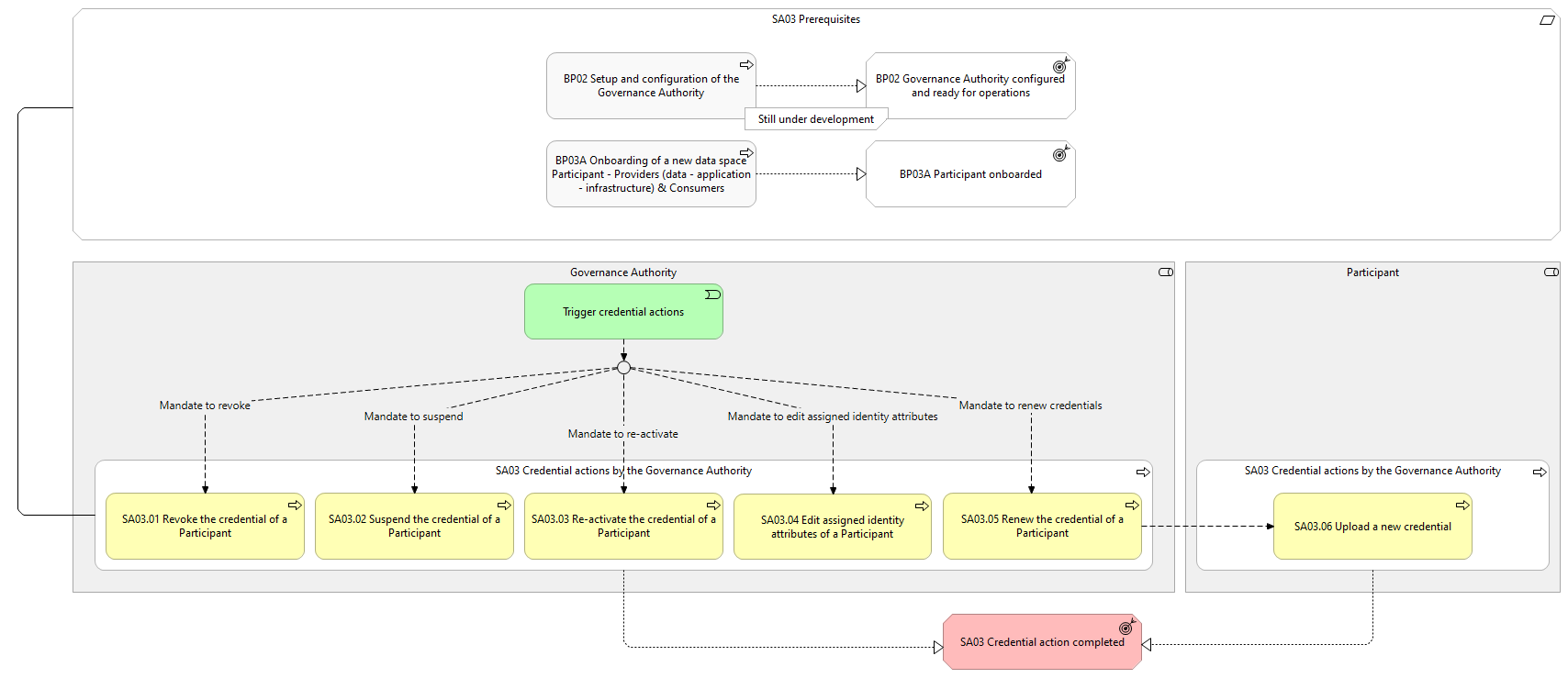 - a mandate to revoke a Participant's credentials will enable the revocation subprocess (SA03.01).